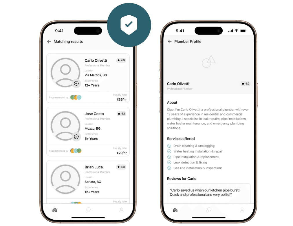 Through immersive, on-ground research with families in Bergamo, our team uncovered a deeper emotional insight: trust and timing matter most. Many families struggled to find reliable professionals when they needed them the most, often resorting to DIY fixes or endless online searches. By integrating contact-based recommendations, ProntoCasa bridges this gap - helping families feel assured, supported, and in control of their household needs.