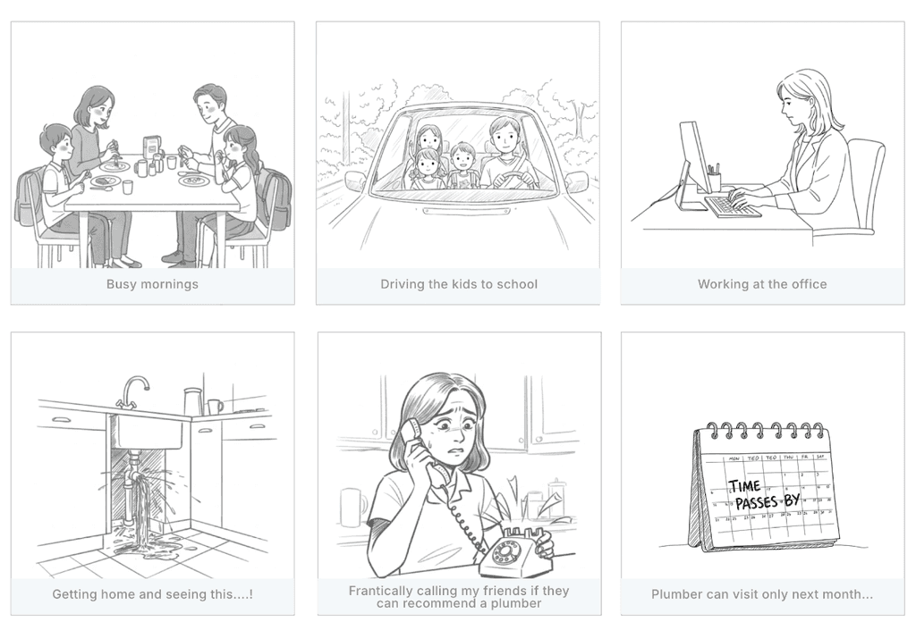 The lack of reliable household services causes stress, forcing families to depend on DIY solutions or unreliable Google results for childcare, eldercare, and maintenance. When that fails, they turn to word-of-mouth for trusted professionals, but delays make it inadequate for urgent needs.